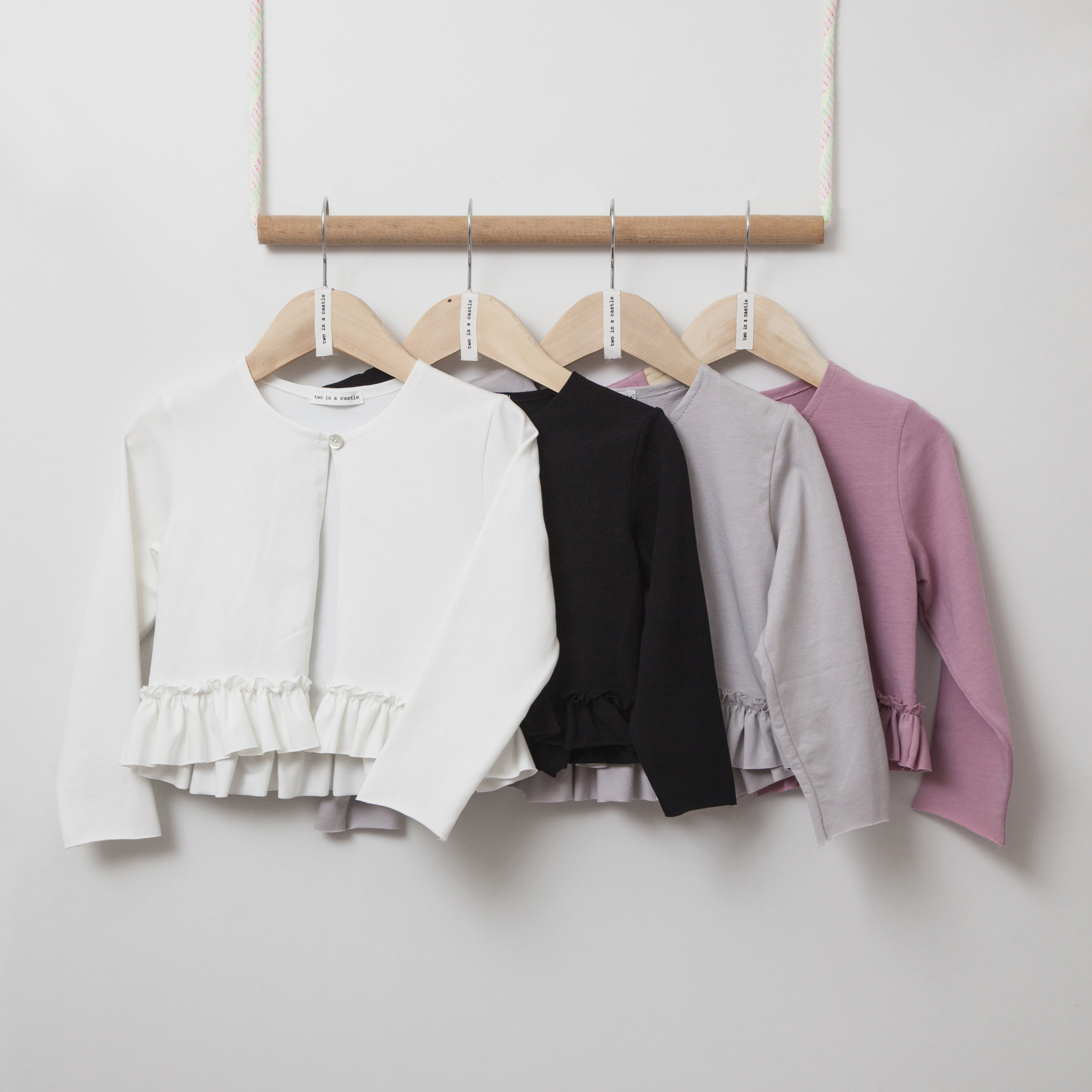 This is a monochrome cardigan, with round neck & long sleeves.